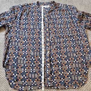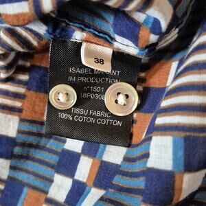 Isabel Marant Etoile Blouse 100% Cotton Nahala Geometric Print Multicolor Shirt FR 38 US Medium Button Up Mandarin Collar Oversized Fit.