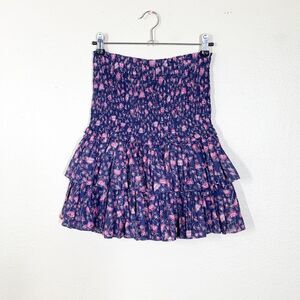 Isabel Marant Etoile Naomi Mini Skirt 34 XS Purple Floral Smocked Cotton India