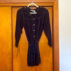 Isabel Marant Etoile | Navy Blue Dress Contrast Stitch Sheer 0 XS (34) See Pics