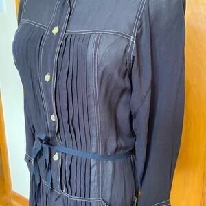Isabel Marant Etoile | Navy Blue Sheer Pintuck Long Sleeve Drawstring Dress 34
