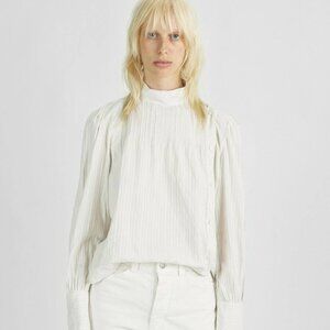 Isabel Marant Etoile Oak High Neck Cotton Top Ecru Ivory Size FR 42 / US 10