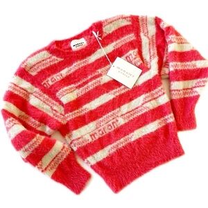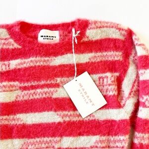 Isabel Marant Etoile Orson Pink Fuzzy Cropped Crewneck Sweater 32 US