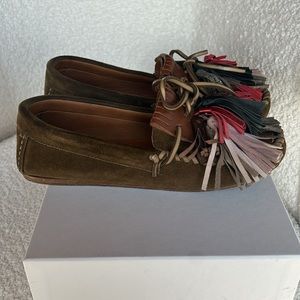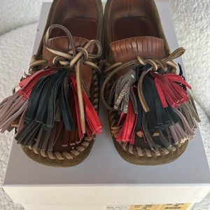 High quality, rare and unique. Isabel Marant took the classic loafer and made it fun and contemporary. Overall excellent condition with slight wear around the top of the loafers. Tassel “pompons” are silver, red, blue, and lavender. Non-smoking home. Thanks for taking a look!