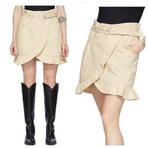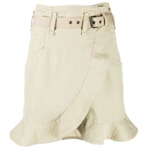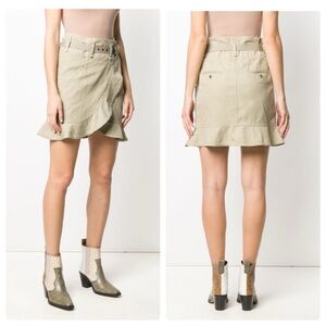 Isabel Marant Etoile Roan Ruffled Denim Wrap Mini Skirt Green Khaki. Size 6 (French 38).