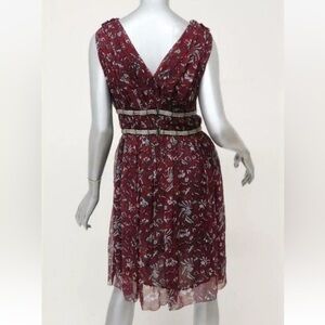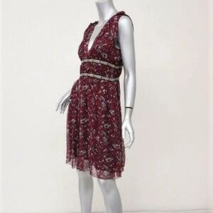 Isabel Marant Etoile 100% Silk Balzon Gathered Boho Ethereal Mini Dress in Burgundy
