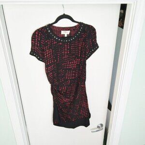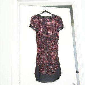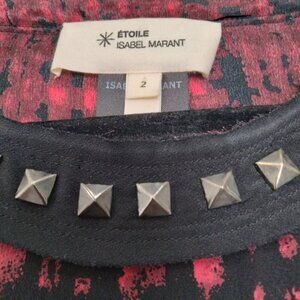 Isabel Marant Etoile 'Trash Rouge' Red & Black Brass Studded Silk Dress Sz. 2