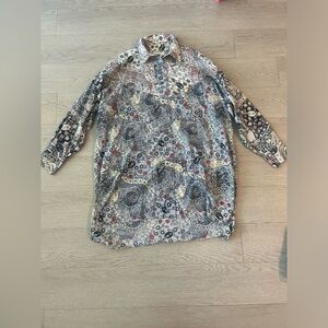 Isabel Marant Etoile Ussaya Ecru Floral Printed Long Button Down Oversized US6