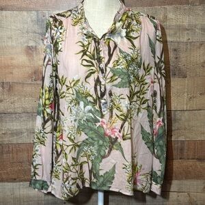 Isabel Marat Étoile made in India cotton tropical print Henley blouse. *Shirt is missing size tag. Please refer to the flat lay measurements to ensure fit.* Isabel Marant Etoile floral-print voile henley blouse. Split round neckline; half-button front. Three-quarter sleeves with button cuffs. Yoked back. Cotton. 3/4 sleeve. Pre-owned condition.