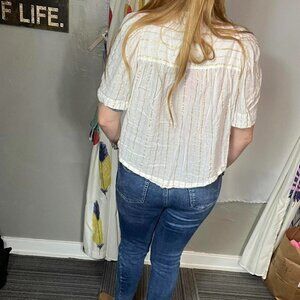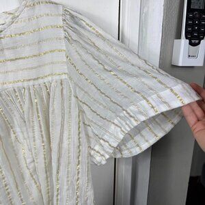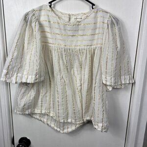 Isabel Marant Etoile white and metallic gold top. High neck with button closure in back. Flutter short sleeves. Light weight. 96% cotton 4% polyester metallic. Size 44 (per size chart US size 12, international size XXL)