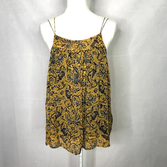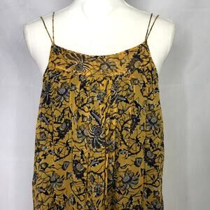 Isabel Marant Etoile yellow / blue silk abstract floral print hi-low tank top