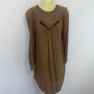 Isabel Marant Etoile Dress Tunic Taupe Fringed Bodice Sz Sm Nwot~SM 4…