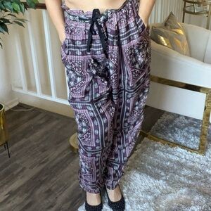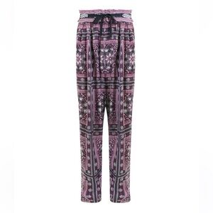 Isabel Marant Everson Relaxed Paisley Print Raspberry Silk Pant Drawstring M