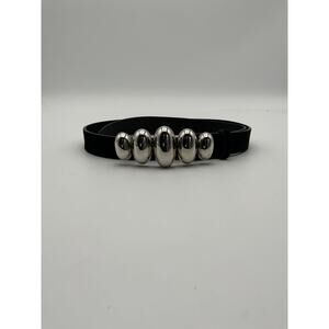 Isabel Marant 'Fuzz' Black Leather Belt Size 80: graphic hardware at post-stud fastening, keeper loop, buffed leather lining.