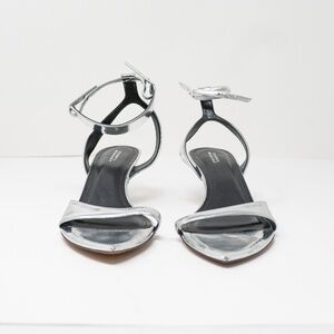 Isabel Marant Genuine Patent Leather Metallic Silver Open Toe Kitten Heels Shoes