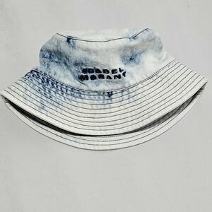 Introducing the Giorgia bucket hat from renowned French designer Isabel Marant. Its light blue, marbled pattern attracts attention and adds a unique charm, making it the epitome of exclusivity. The front of the hat proudly displays the dark "ISABEL MARANT" logo, emphasizing its luxurious character.