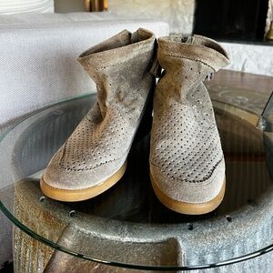 Isabel Marant Grey Cut Out Suede Tassel Embellished "Beslay" Wedge Ankle Boots