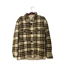 Brushed wool-blend flannel jacket. Check pattern throughout. · Spread collar · Button closure · Flap pockets · Welt pockets · Vent at side seams · Buttoned tab at cuffs · Unlined Supplier color: Ecru