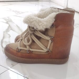 Isabel Marant Nowles Suede Lace Up Boots Snow Boots Ankle Boots Booties in Camel Cognac Leather. Size 36 US size 6. Well loved condition with some wear and heel drag, please see all photos.