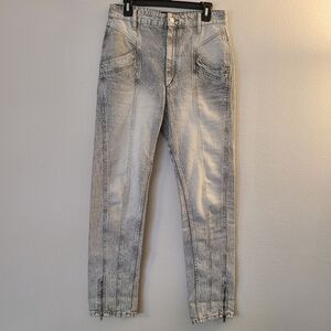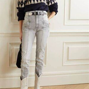 Isabel Marant Kelissa Trouser Gray Jeans. Isabel Marant's straight-leg 'Kelissa' jeans have a faded finish and ultra high waist that gives them a vintage look. Cut from gray denim, they're stitched with vertical seams and have zipped cuffs. Nail this season's Western trend by teaming yours with cowboy boots. They are in excellent preowned condition.
