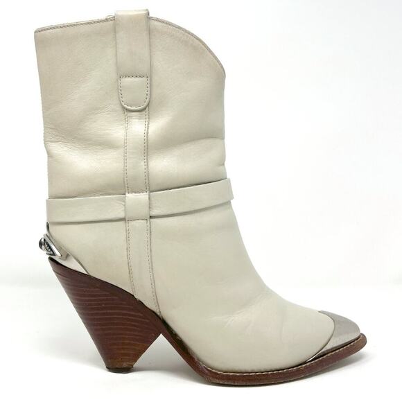 These authentic Isabel Marant Lamsy boots in beige leather are a standout piece from the 2018 Fall/Winter Runway Collection. Crafted in Italy from supple calfskin, they combine Parisian cool with Western flair—perfect for modern cowgirls and fashion lovers alike.