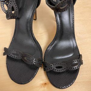 Every outfit needs a punctuating glam of these heels by Isabel Marant. These croc leather heels have a classy silhouette a laser-cut strap on an open toe and an ankle strap. Style yours with all your favourite outfits.