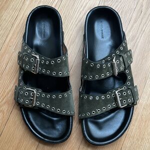 Isabel Marant Lenny Suede Buckle Slides Khaki