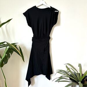 Isabel Marant Loko Black Dress Knit Asymmetrical Handkerchief Hem Wrap Size 36