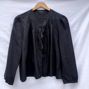 Isabel Marant Long-Sleeve Pintuck-Ruffle Blouse Black
