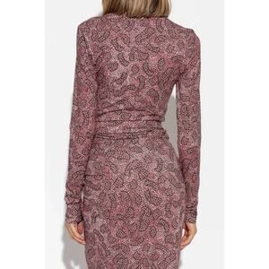Isabel Marant Lyss Graphic Printed Gathered Top in Antik Pink Black 40 US 8