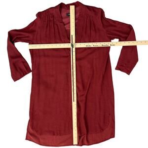 Isabel Marant Maroon Red Burgundy Long Sleeve V-Neck Split Hem Tunic Dress sz M
