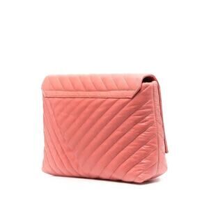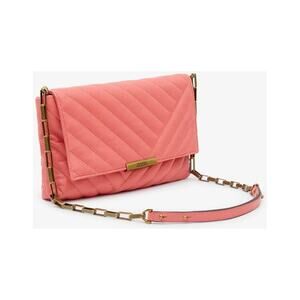 Inside, you'll find a well-organized interior compartment with a convenient slip pocket and a zip pocket for your essentials. The adjustable leather and metal chain strap allows for versatile wear, while the front flap with a snap button closure ensures your belongings stay safe and secure. The iconic logo detail adds a signature touch.