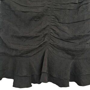 Plain woven stretch viscose and silk-blend mini skirt. Jacquard woven floral pattern throughout. · Concealed zip closure · Gathering throughout · Layered construction with ruffles at hem.
