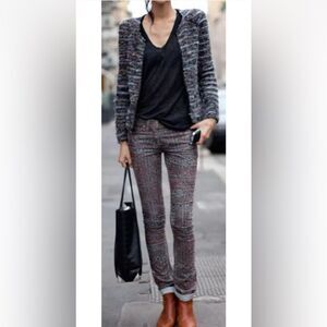 Isabel Marant Monty Wool Alpaca Black Varsity Jacket Striped Tweed Size M