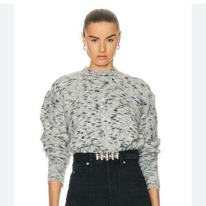 Isabel Marant Morena pullover. Mohair blend gives it a soft fuzzy texture. Shades of gray. Loose fitting. Size EU 38, US 8. Light signs of wear. Chest 42”, length 21”