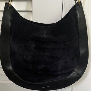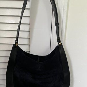 Midnight blue suede and black leather shoulder bag. Purchased from Saks in October 2021, used once and in like-new condition. Retails for $960