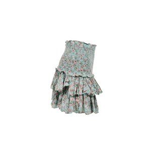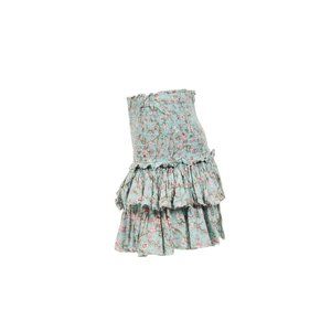Isabel Marant Naomi Smocked Green Teal Floral Ruffle Tier Short Skirt 42