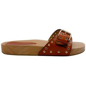 Isabel Marant Natural Leather Jaso Eyelet Grommet Wood Slide Sandals
