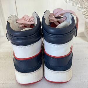 Stylish Isabel Marant athletic shoes. Features red and navy accents. High-top design with secure strap.