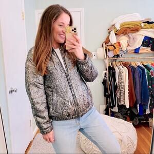 I adore this super cute, like new rare designer Isabel Marant style silver puffer reversible jacket