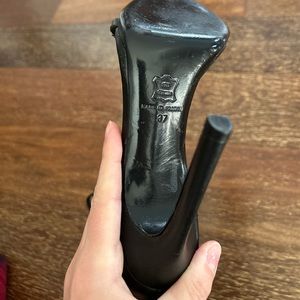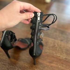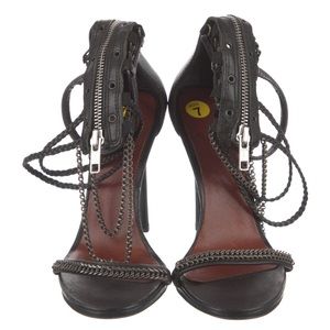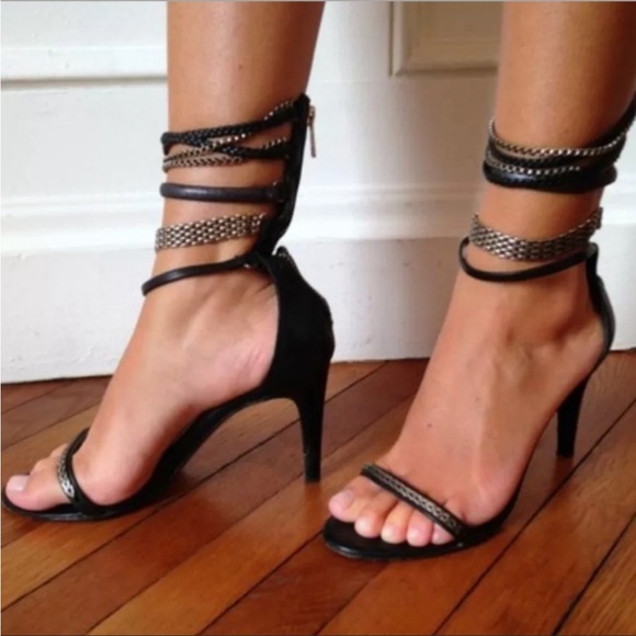 Isabel Marant Rio Heels -US size 7/UK size 37. Black leather heels with gunmetal chain accents throughout. Sleek 5” heel. Zipper at the back. Gently used with minimal wear. Purchasing this item acknowledges that you have viewed all photos, read entire description, and asked questions if applicable prior to purchase.
