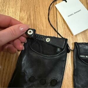 Isabel Marant Roady Easy Rider Gloves in Black - Perforated Inner - Slightly Stretchy at Wrist - Cut Out at Knuckles & Top Wrist with Snap Closure - Size 7 1/2 - New with Tags