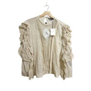 Isabel Marant Roya Sleeveless Lattice-Lace Neck Blouse, Size FR 44/US 12