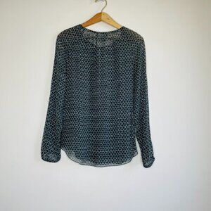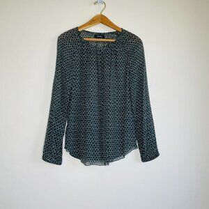 Beautiful silk blouse in a geometric pattern, reminiscent of little graphic thunders.