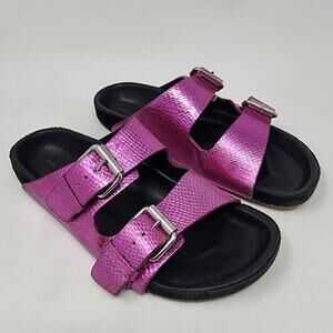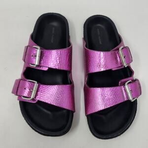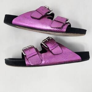 Isabel Marant Slide Sandal Women 6 Lenyo Fuchsia Pink Metallic Snakeskin Double Buckles