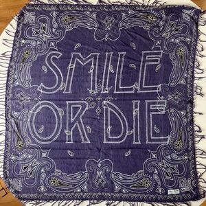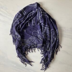 The Isabel Marant "Smile or Die" Sheer Scarf is a stylish and bohemian accessory perfect for the winter and fall seasons. Made of cotton with fringe accents, this purple scarf is a statement piece that adds a touch of glam to any outfit. Designed by the renowned brand Isabel Marant in India, this scarf is lightweight and versatile, making it ideal for layering and adding a pop of color to your wardrobe. It measures 38" x 40". Excellent condition as shown in the photos.