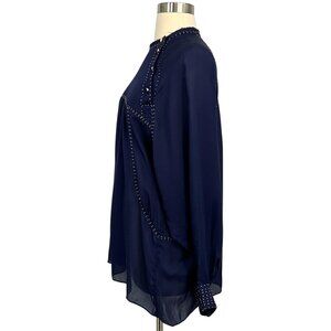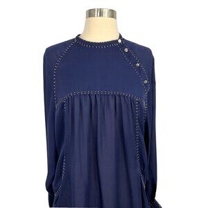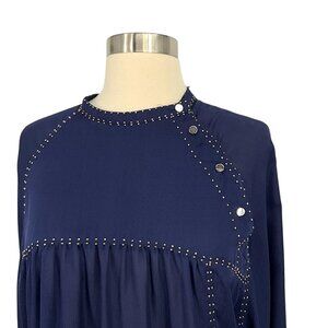 Isabel Marant Studded Blouse Navy Blue EUR Size 40 100% Silk Pockets