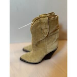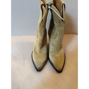 Isabel Marant Suede Cowboy Boots Tan Size 6 Silver Ti