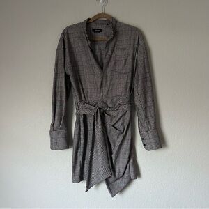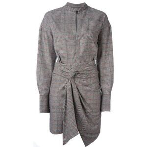 Isabel Marant Tie Front Long Sleeve Dress in Houndstooth EU 36