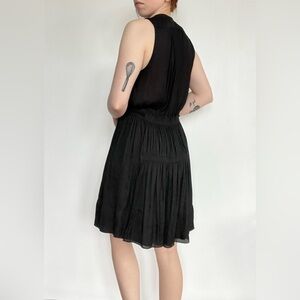 Isabel Marant Tiered Pleated Elegant Black Sleeveless Mini Dress Designer 36