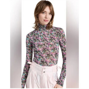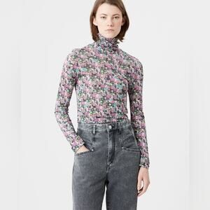 Isabel Marant - Joyela Pink Blue Floral Turtleneck Top - Large EU 42/ US10
